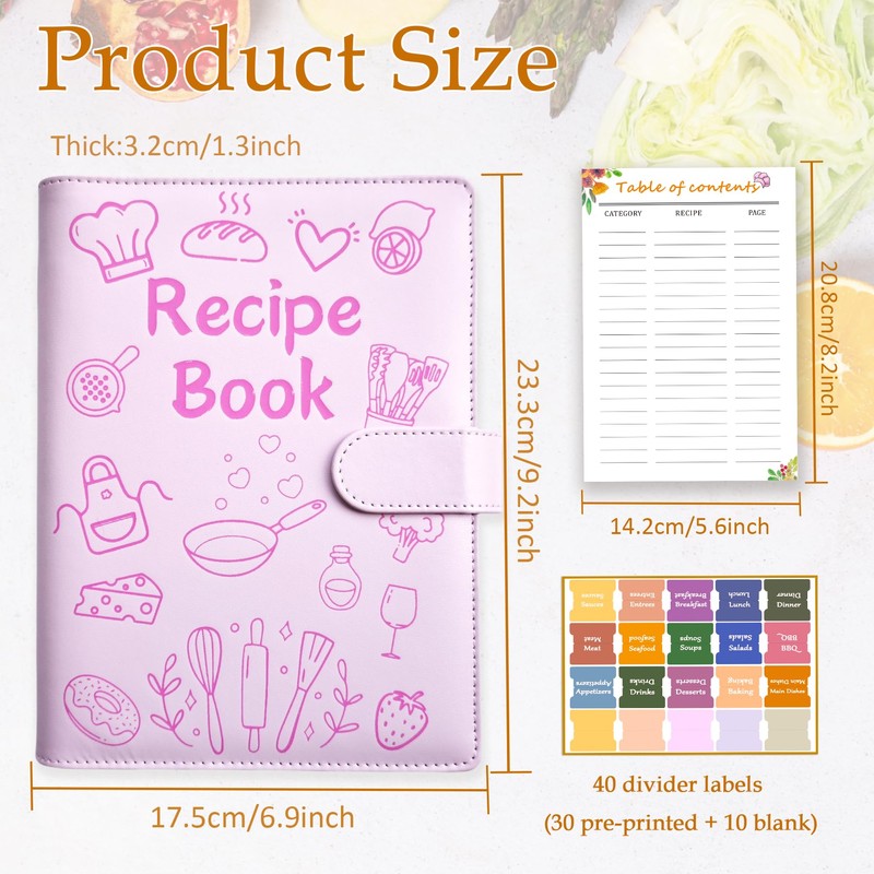 - Create Your Own Recipe Book: With space to store 160 recipes, this recipe book binder is designed for you to write in your own recipes. It also comes with a kitchen conversion chart, making it easier for you to cook your favorite dishes. We also offer 40 labels, so you can choose to use pre-printed labels or customize them to your liking for easy sorting.