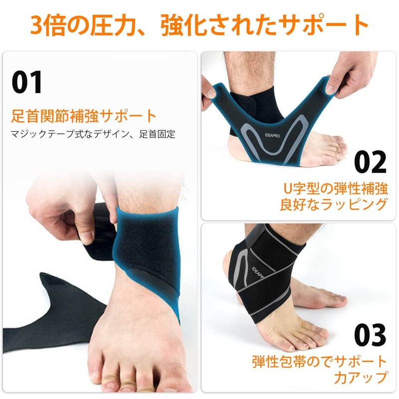 IDEAPRO 足首サポーター 足首固定 アキレス腱 サポーター 筋肉保護 関節 靭帯 スポーツ用 人体工学の原理(左足と右足)弾性調節可能な圧力バンド 着脱簡単 通気 男女兼用 スポーツ 日常用 (左右セット)