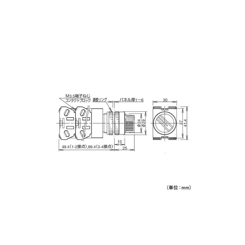 • Body Shape: One-piece, mounting hole dimensions, mounting shape: φ0.9 inches (22 mm), bezel size: Other
