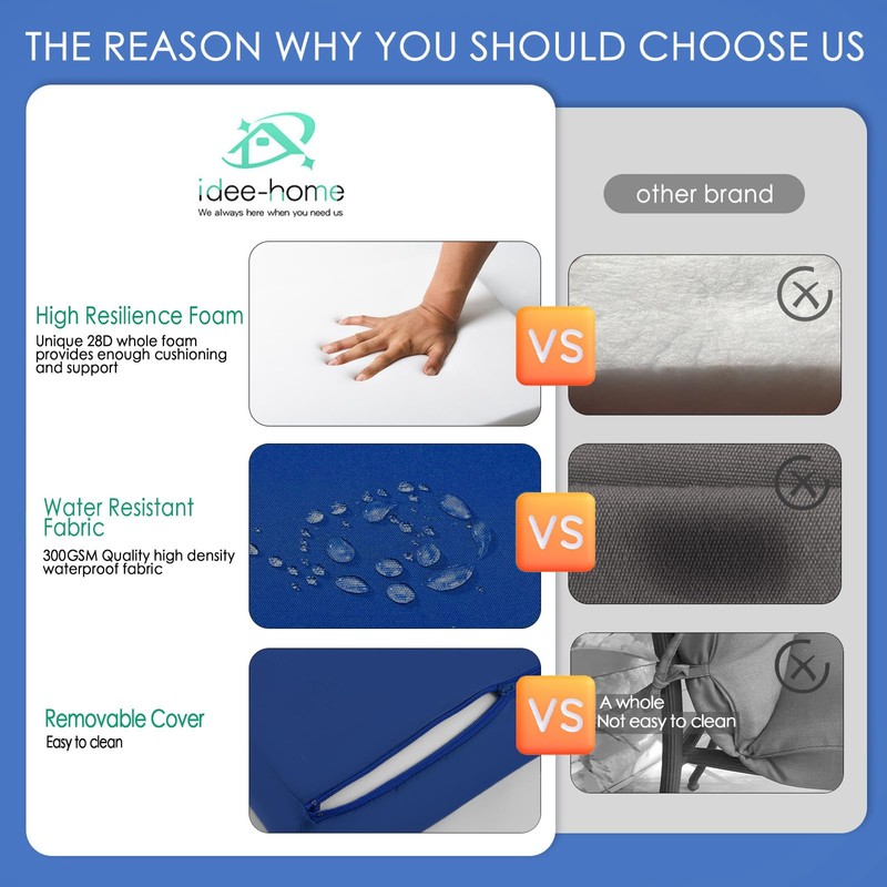 - Unique High-Density Foam-The outdoor patio seat cushions fill thickened 4 inches memory foam, high-quality 100% foam core, soft and highly elastic, which can absorb human pressure and provide ergonomic softness and comfortable cushioning to hard chairs, long sitting is not easy deformation, that you can sit more comfortably