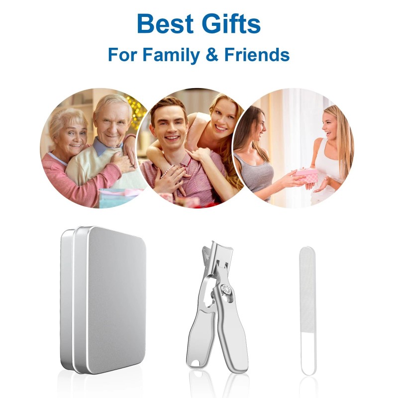 Versatile & Reliable: Includes 1x nail cutter, 1x nail file, 1x storage bag and metal case; Perfect for men, women, seniors and anyone dealing with thick or difficult nails; A thoughtful gift for loved ones—backed by a lifetime warranty for worry-free use