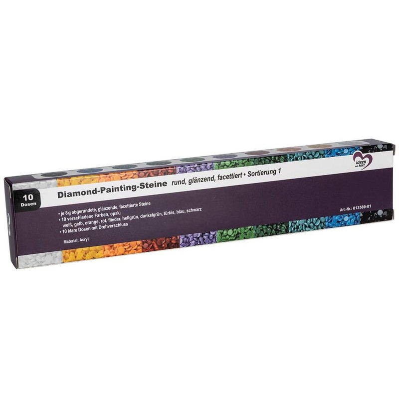 Ideen mit Herz Diamond Painting Stones | Round (Assorted Colours 1 | 10 Tins)
