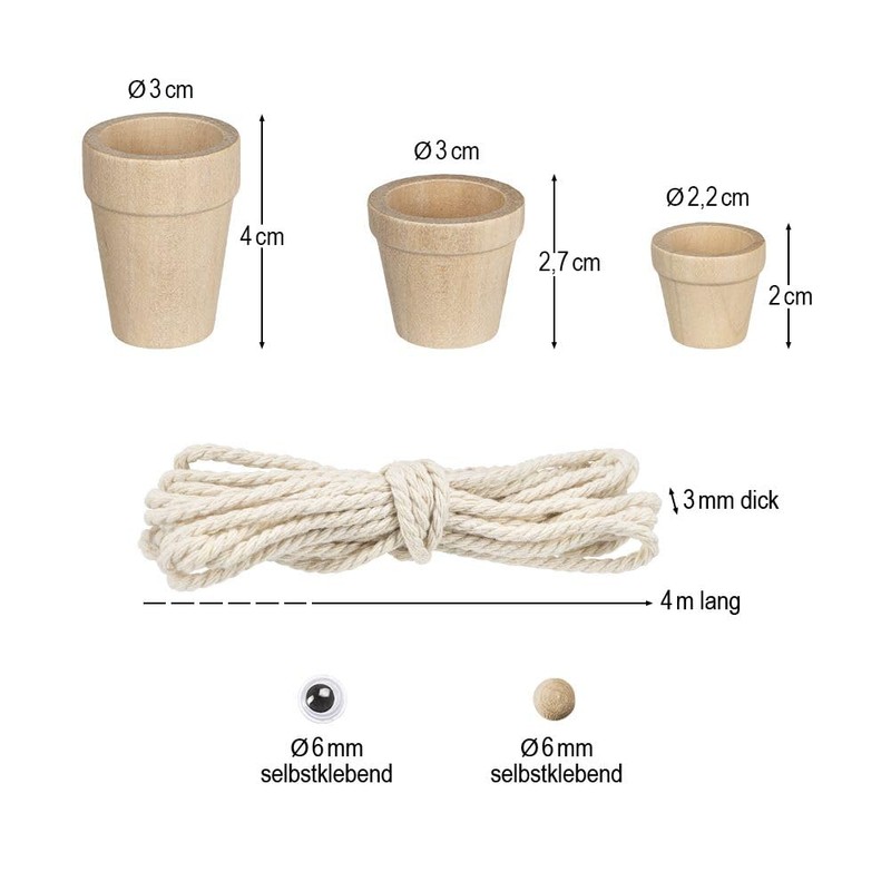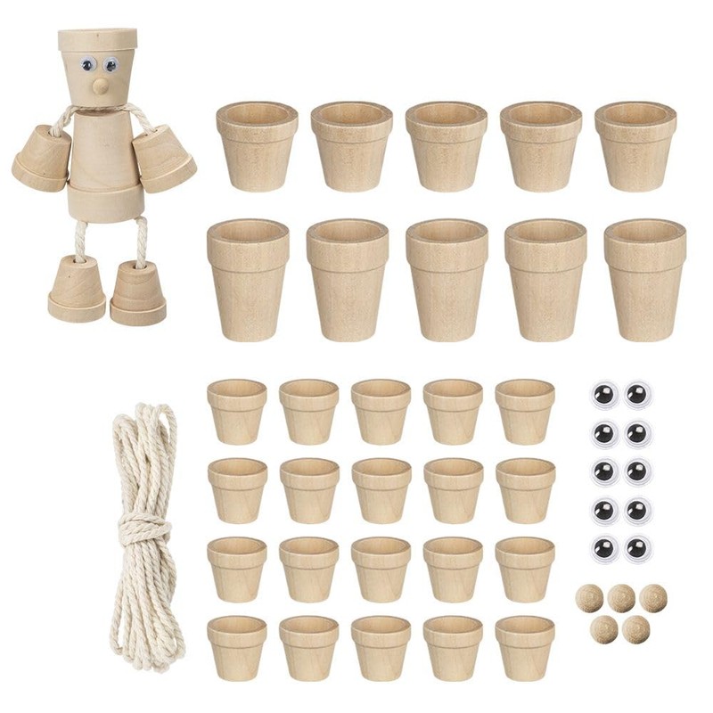 Ideen mit Herz Flower Pot Figures to Assemble | Craft Set for Miniature Figures Made of Wood | DIY Kit | Construction Kit for 5 Men with Floppy Legs