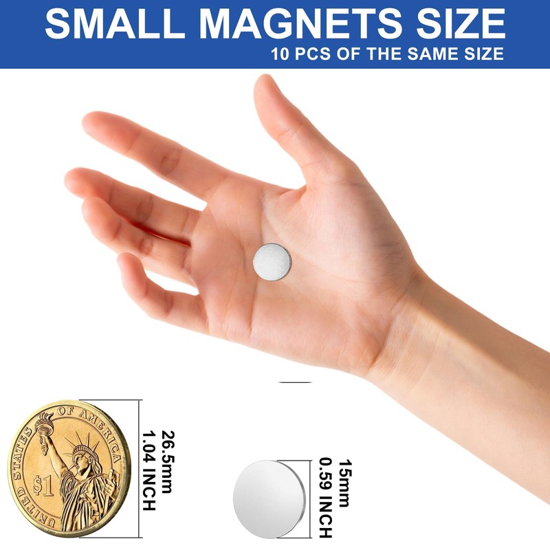 idellette 10 Pcs Fridge Magnets, 15x2mm Small Magnets, Mini Tiny Magnets Neodymium Disc Magnets, Strong Small Magnets for Crafts, Refrigerator, Nail Cutter, Whiteboard, Office and School