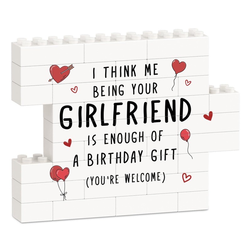 IDELTIME Boyfriend Birthday Gifts, Funny Building Block Puzzle Plaque, Birthday Gifts for Boyfriend, Him, Men, BF, I Think Me Being Your Girlfriend is Enough Desktop Decorative Sign