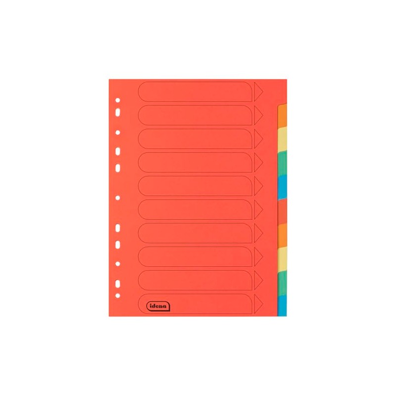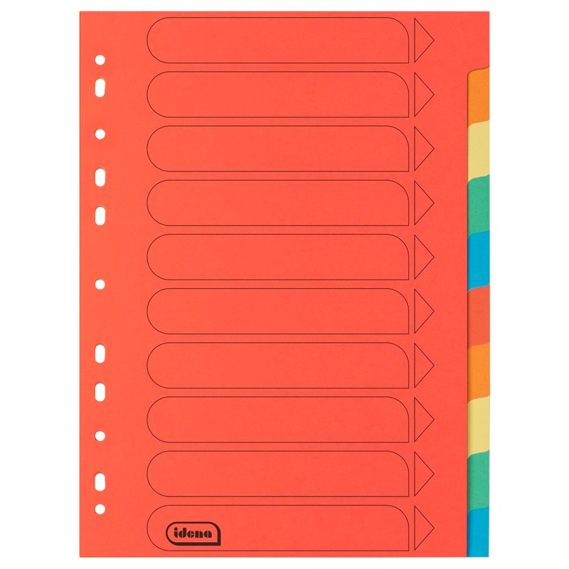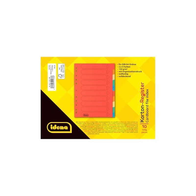 Idena 11133 Cardboard Index for DIN A4 Documents, 22.5 x 30 cm, 10 Full-Colour Dividers in 10 Colours, 150 g/m², Organiser with Euro Holes and Organisational Print