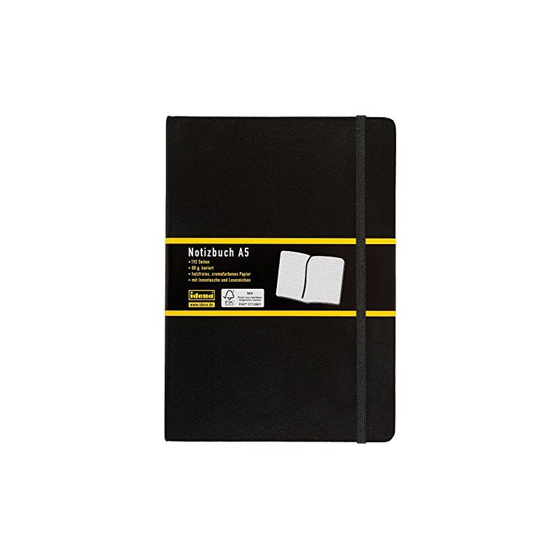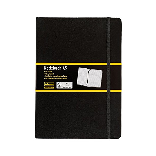 Idena 209281 Notebook DIN A5, 192 Pages, 80 g/m² Squared, Black
