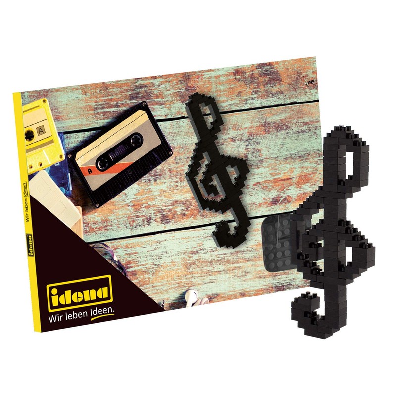 Idena 40143 - Postkarte Notenschlüssel mit einem 3D Modellbauset mit 70 Original Brixies Minibausteinen, Schwierigkeitsgrad 1, Grußkarte oder Mitbringsel für Kinder und Erwachsene