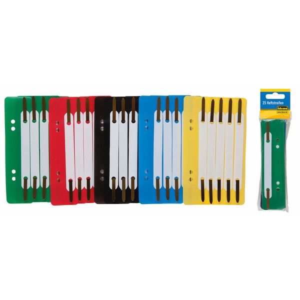 Idena Idena 300391 - Heftstreifen aus Kunststoff, 5-fach farbig sortiert, 25 Stück