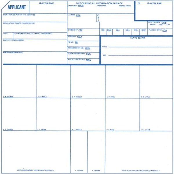 Identicator Fingerprint Systems Identicator Applicant Fingerprint Cards, Pack of 250, FBI Standard Form No. FD-258