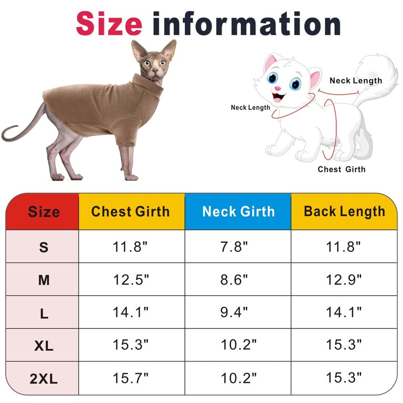 - 【ATTENTION REQUIRED】The size standard of this shirt is suitable for hairless cats, other cats or puppies are recommended to choose a larger size. For the comfort of your pet, please measure your pet's body size before purchasing.