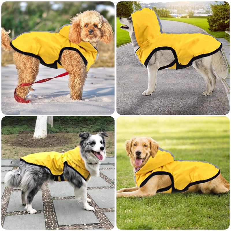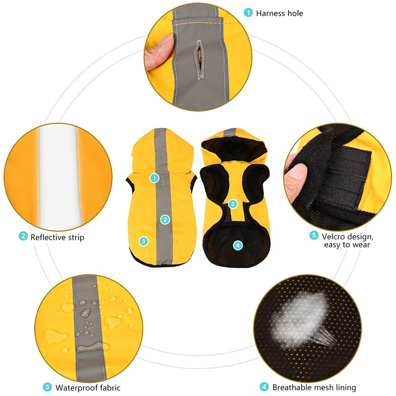 - Safer Travel: The reflective strip on the back of the raincoat jacket for dogs provides the best visibility to protect pets in rain, snow or bad weather in poor visibility. The belt hole on the back is convenient to guide your pet in the rain.