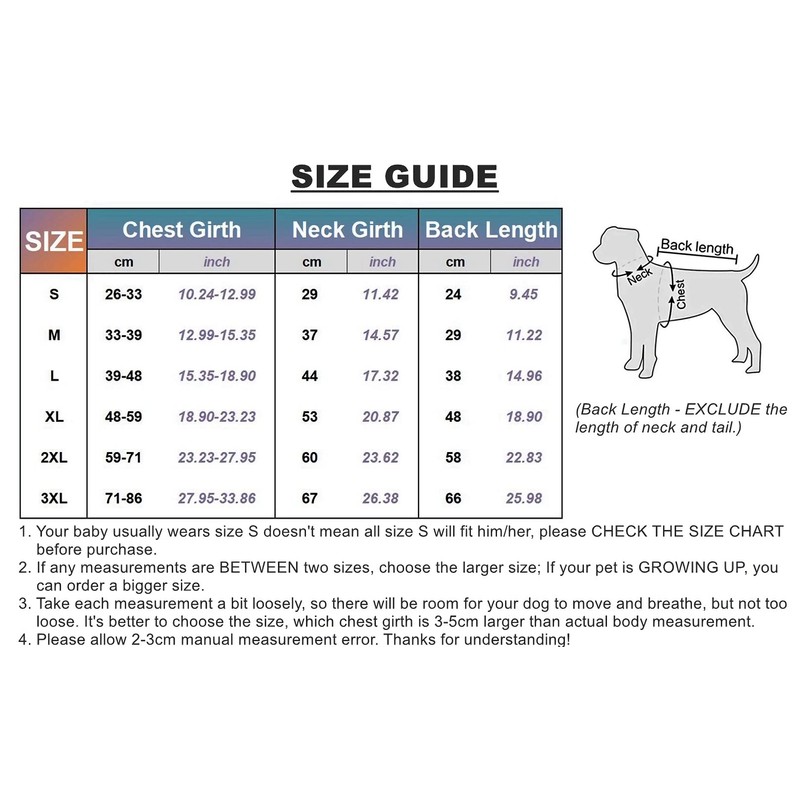 - If your dog usually wears size S, it does not necessarily mean that our size S will fit. Please check the size details carefully before you buy.