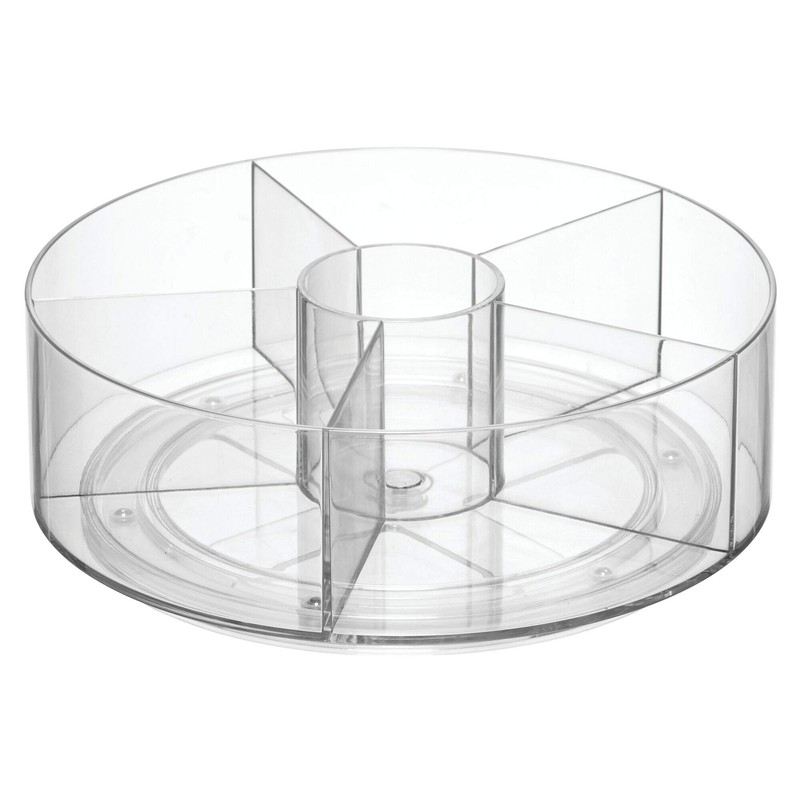 iDesign Cabinet Binz Divided Rotating Turntable Tea Packet Organizer, 9" x 9" x 3.01", Clear