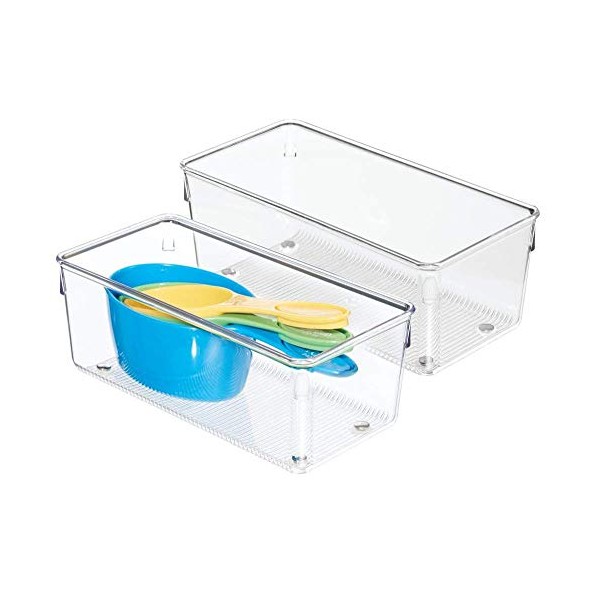 iDesign Linus Kitchen Drawer Organizer for Silverware, Spatulas, Cutlery, Gadgets, Office Supplies, Cosmetics, 4" x 8" x 3", Set of 2, Clear