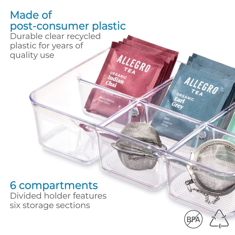 iDesign Linus Plastic Divided Packet Organizer, Holder for Condiments, Sugar, Salt, Pepper, Sweeteners, Tea Bags, Spices
