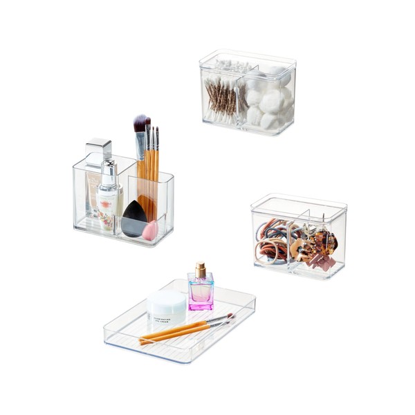 iDesign Makeup Organizer Set for Countertops and Drawers – Luci Collection – Set of 4- Clear