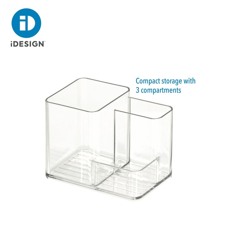 - MAKEUP TRAY - Tackle clutter on countertops or inside drawers for good with our iDesign Luci Makeup Organizer Tray; This organizer tray fits neatly inside standard-sized drawers; The clear construction is sleek and keeps contents easily accessible and contained so you can easily find what you’re looking for while keeping contents easy to view and grab; Straight sides slide flush against other organizers so there are no gaps or wasted space; Tray doubles as a guest hand towel tray; Set of 3