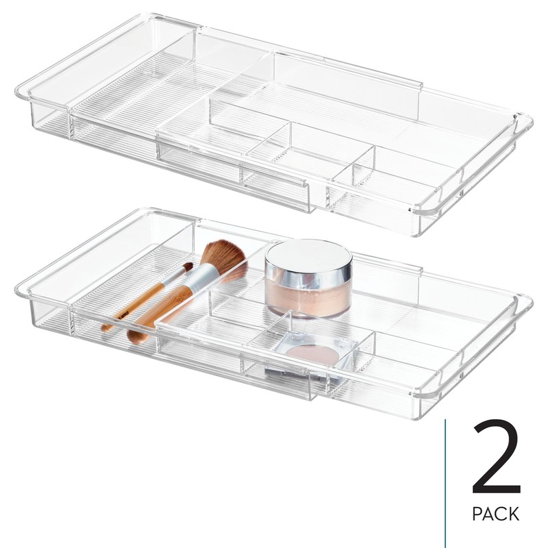 iDesign Makeup Storage Tray for Cosmetics or Jewelry, Set of 2, Clear Linus Expandable Drawer Organizer M2