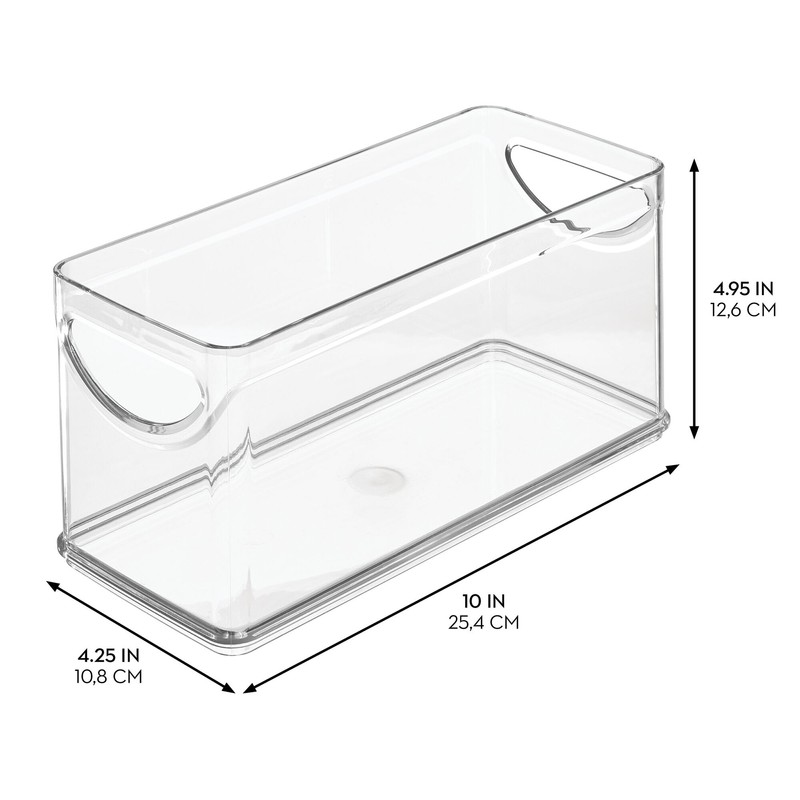 iDesign Narrow Pantry Organizer Bins with Handles - Storage Bin for Cabinets or Fridge- Set of 2 - Clear