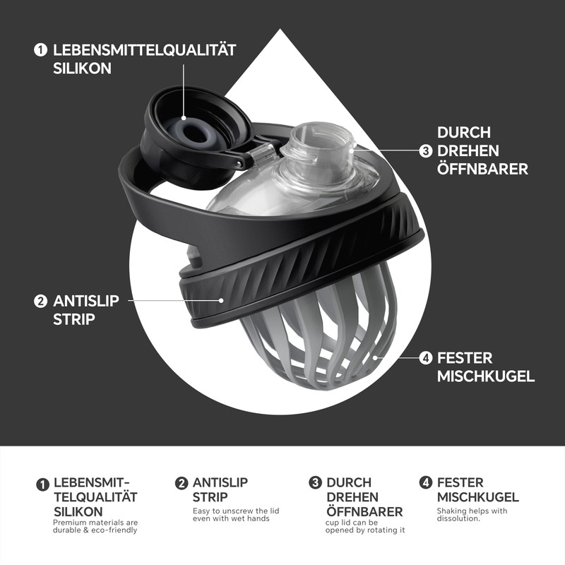 - Lightning-clean in seconds: Sophisticated wide-mouth design and fully dismountable components (blender bottle shaker principle) make cleaning child's play - guaranteed without residue in cracks.