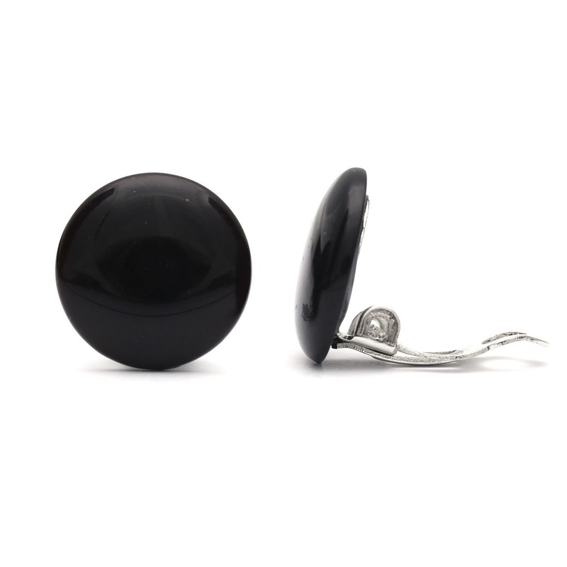 Idin Jewellery - Plain Black Acrylic Round Button Clip on Earrings