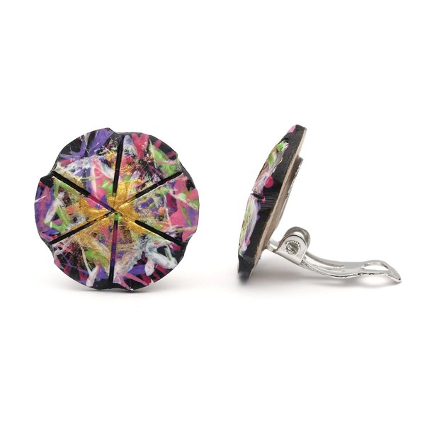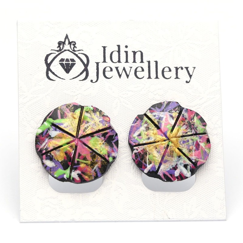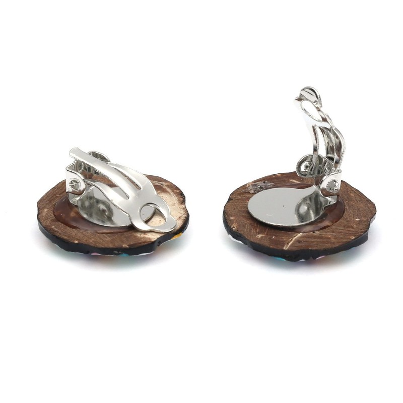 Idin Jewellery - Vibrant Splashed Coconut Shell Button Clip On Earrings