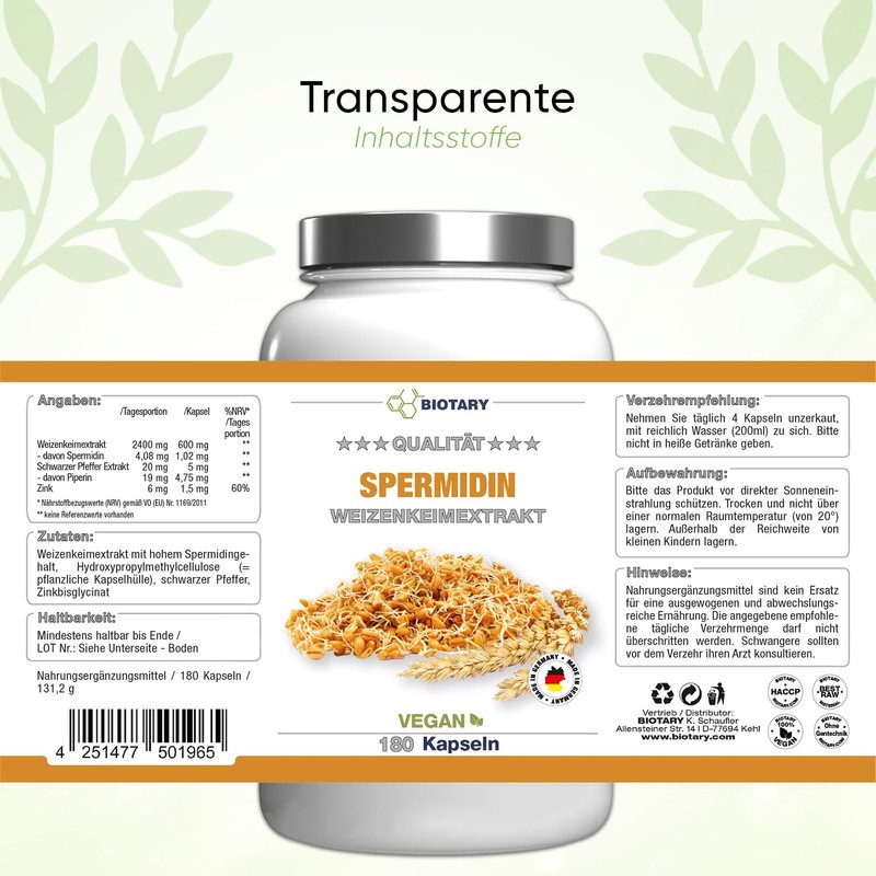 idine - 180 capsules of 606 mg - over 4 mg per daily serving - including pill box - high dose premium quality - laboratory tested - vegan - made from high-dose wheat germ extract