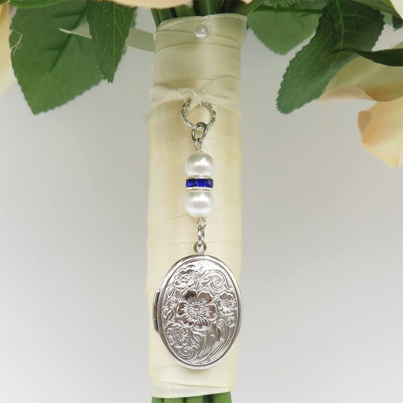 - Perfect for wedding for memorial.It's a beautiful handmade silver bridal bouquet charm with an oval silver photo frame locket for you to put in some photos of much loved friends or relatives who can not be with you on your Wedding Day.