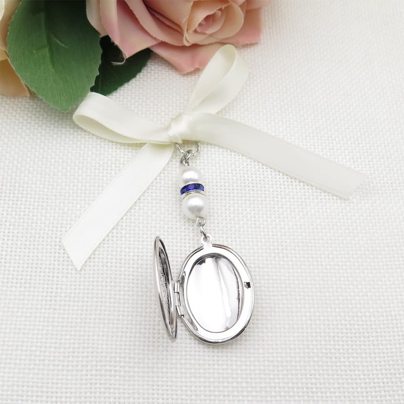 IDLAN Locket for Bouquet Memorial Bouquet Locket Memorial Wedding Gift Memorial Bride Pendant Memorial Photo Keepsake Something Blue (Oval Locket)