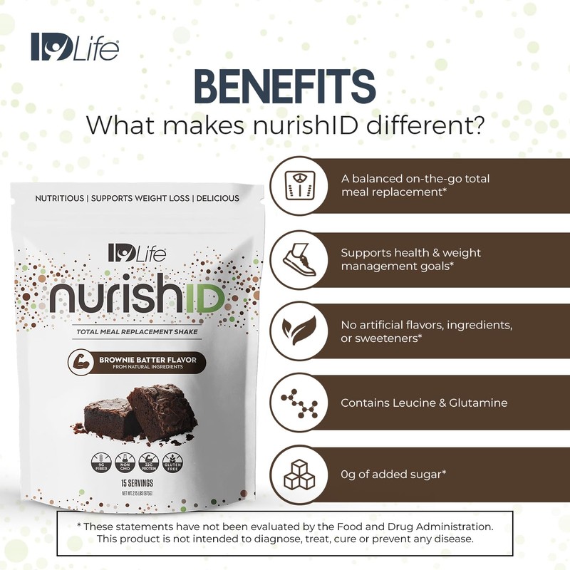 - Weight Management: NurishID Brownie Batter is your ally in achieving & maintaining a healthy weight. This meal replacement shake offers support for a balanced approach to a fit and well-nourished body