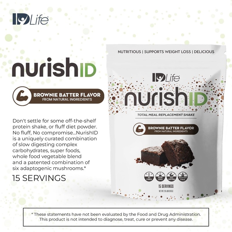 IDLife - NurishID Shake - Brownie Batter - Shake Infused with Slow-Digesting Carbs, Superfoods, Vegetable Blend & Six Adaptogenic Mushrooms, Build Lean Muscle, and Manage Weight - 15 Servings