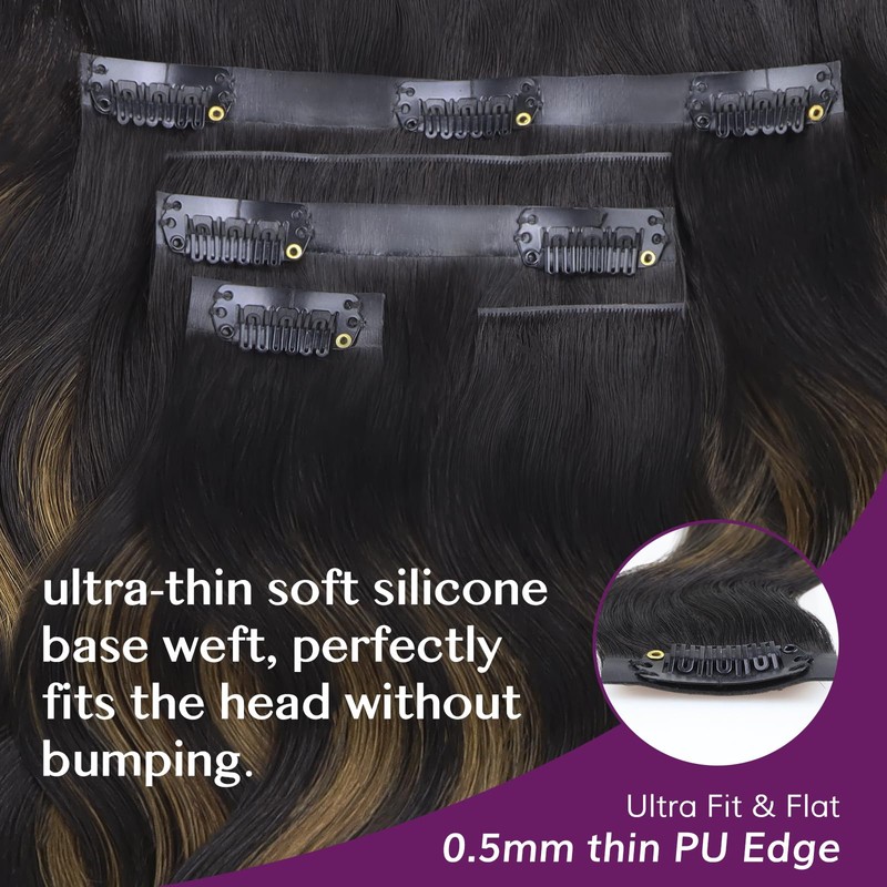 IDN BEAUTY 5+2 Invisi Edge Seamless Clip in Hair Extensions Human Hair, Body Wave Balayage Natural Black to Brown 16 Inch 110g 5pcs Invisible Edge & 2pcs Seamless Clip ins for Black Women No Leave Out