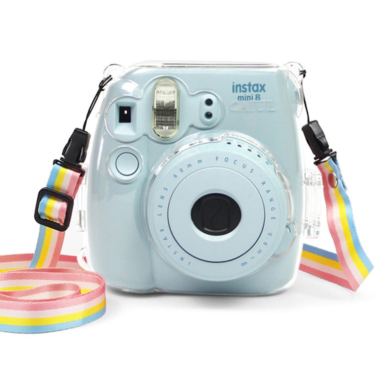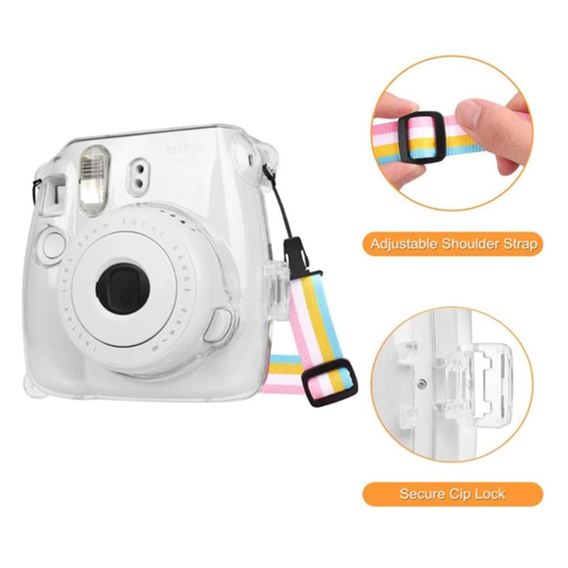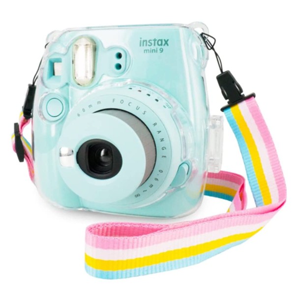 iDock Cristal Claro Estuche,Funda para cámara instantánea correa hombro,Correa Desmontable de Arco Iris (mini9)