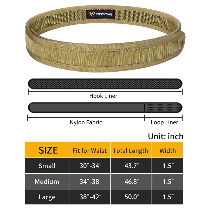 IDOGEAR Hook Liner Inner Belt 1.5" Width for Tactical Duty Belt Gun Belts for Men (Khaki, Small)