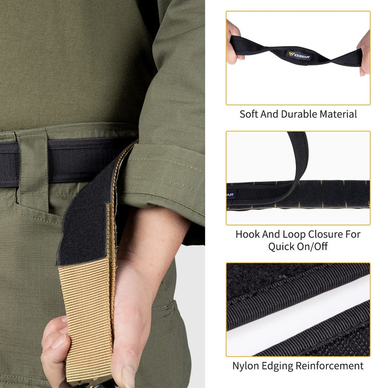 - TACTICAL OR LEISURE:IDOGEAR hook liner inner belt is applicable to all kinds of overalls,casual pants,normal jean,tactical trousers and outdoor trousers.Built for operational or recreational outdoor activities.Ideal equipment for airsoft,paintball,shooting,hunting,climb,patrol and combating.
