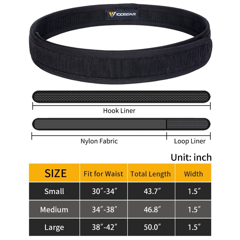 IDOGEAR Hook Liner Inner Belt 1.5" Width for Tactical Duty Belt Nylon Gun Belts Unisex (Medium, Black)