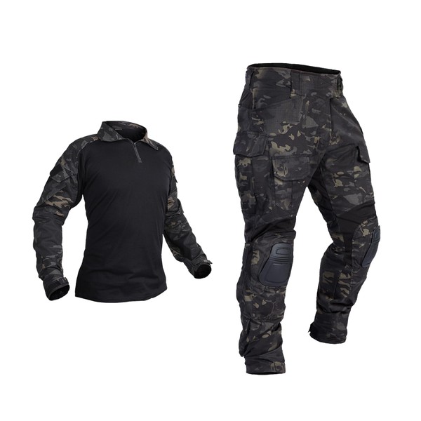 IDOGEAR OUTDOOR Men’s G3 Combat Uniform Tactical Camouflage Apparel Set For Hunting Airsoft Paintball Milsim With Knee Pads(Multi-camo Black,Medium)
