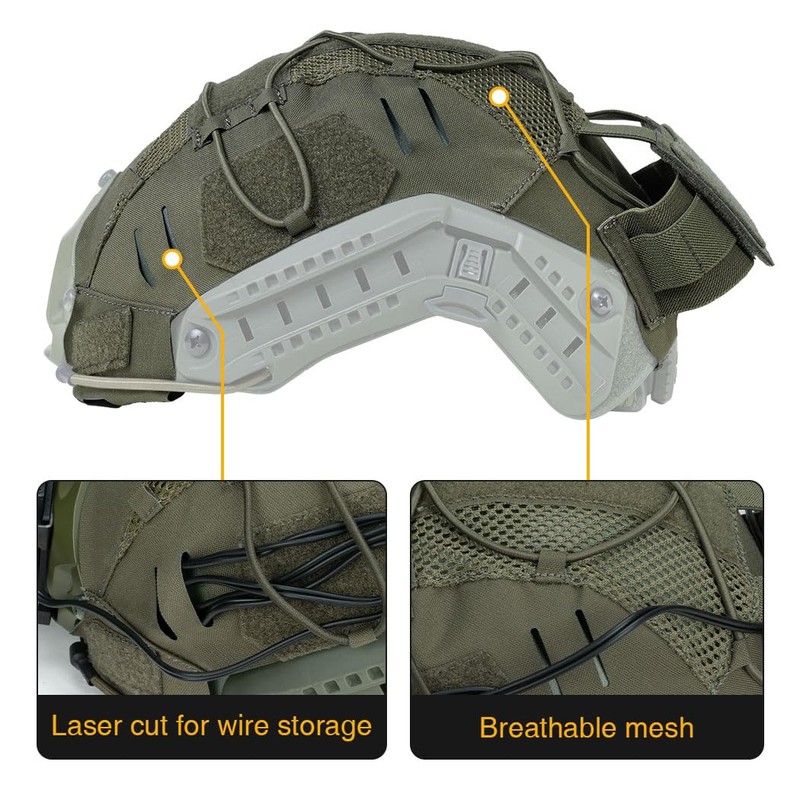 - EXCELLENT MATERIAL: IDOGEAR Tactical helmet cover is made of durable 500D nylon fabric with laser cut process. Constructed with high-quality mesh cloth, elastic band and hook & loop panels. Lightweight but durable for long-lasting wear and tear resistance.