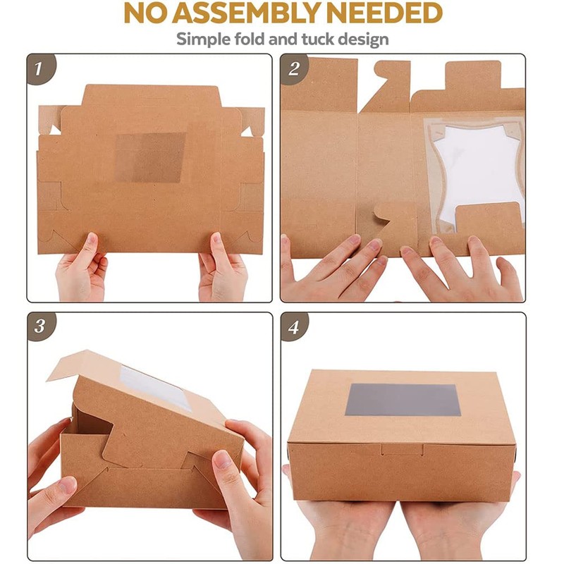 - Size: 9.4 inches length x 6.1 inches width x 3 inches height, Total of 16 kraft boxes with window that are perfect in showcasing your sweet treats merchandise. Its size can be used for cakes, doughnut, candies, pastries, muffins, cupcakes, cookies and more!