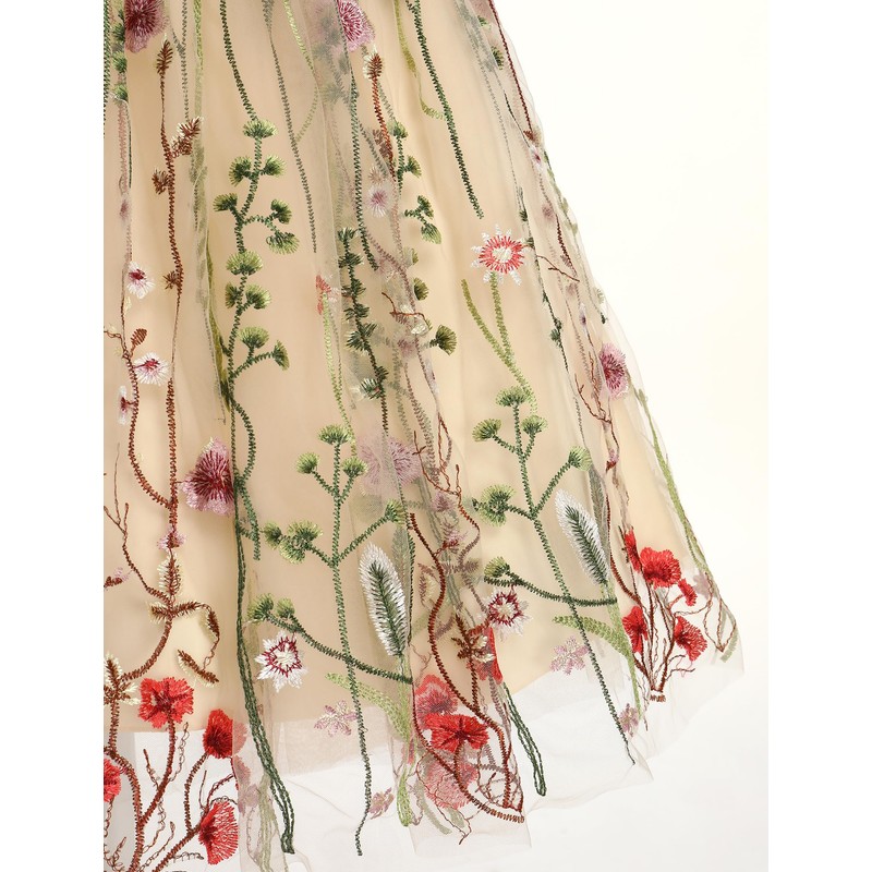- Vintage Flower Appliques Maxi Tulle Skirt: Princess pageant long tulle dresses for girls, full length tulle skirt, allover embellished with boho flower lace appliques at hem, total 4 layers of the hemline, shows the fluffy appearance, consists of 1 layer tulle with embroidered flowers, 1 layer soft tulle, 1 layer satin and 1 layer lining, adds fullness to this flare a-line puffy swing dresses, fit for dancing and twirling in ball gown prom party