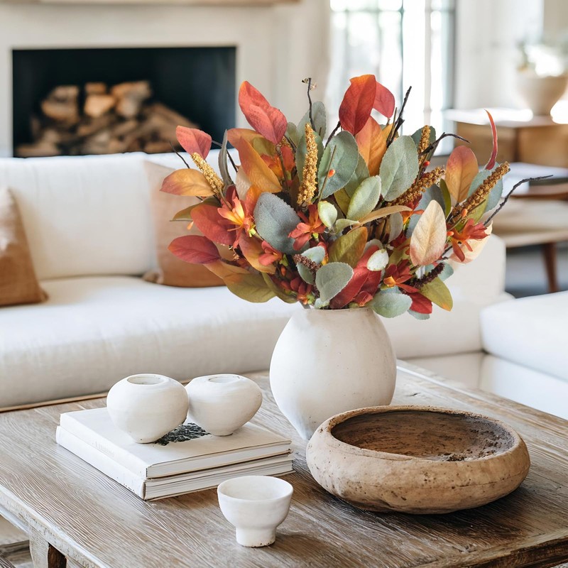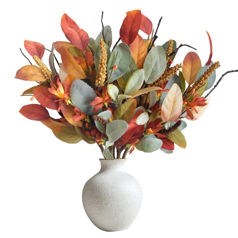 idyllic 8 Pcs 14 Inch Artificial Fall Stems - Handcrafted Harvest Decor with Flowers,Berries, Leaves for Vase Centerpiece, Thanksgiving Table, DIY Wreath