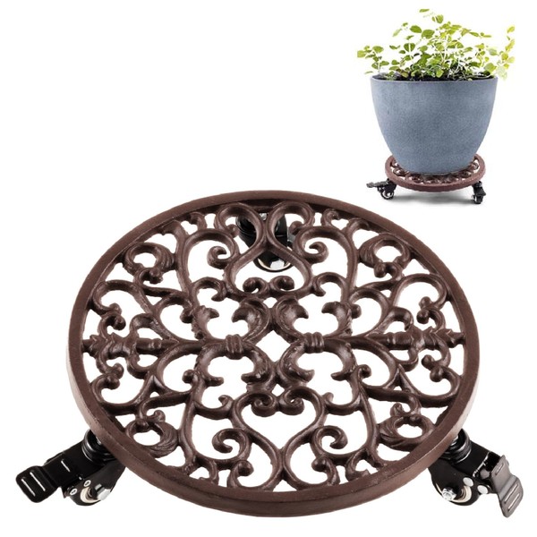 IDZO Capacity 350 lbs Plant Caddy with Wheels Heavy Duty Cast Iron Plant Stand with Lockable Wheels 12 Inch Classis Style Dark Brown