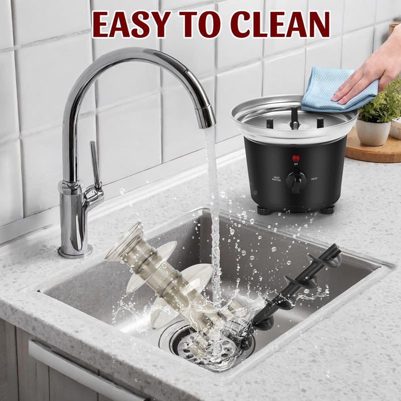 - EASY TO OPERATE: IEBIYO chocolate melting machine with 6 pcs forks is easy to use, just turn on the machine and run for 3~5 minutes to warm up,pour in the right amount of the melting chocolate or any other meltable solid into the base, switch on the motor, and watch the magic happen. The fountain disassembles quickly, making cleanup a breeze.【PLEASE NOTE: Only chocolate sauce and other sauces can be used, the heating bowl can only heat the chocolate, do not dissolve the chocolate pieces.】