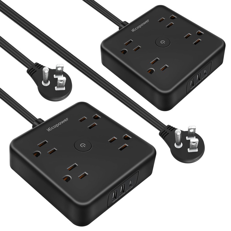 IECOPOWER 2 Pack Ultra Flat Plug Power Strip,Power Strips with Surge Protection-4 Widely Outlets,6 ft Flat Plug Extension Cord with 3 USB Ports(1 USB C Port),Slim Desk Charging Station,Black