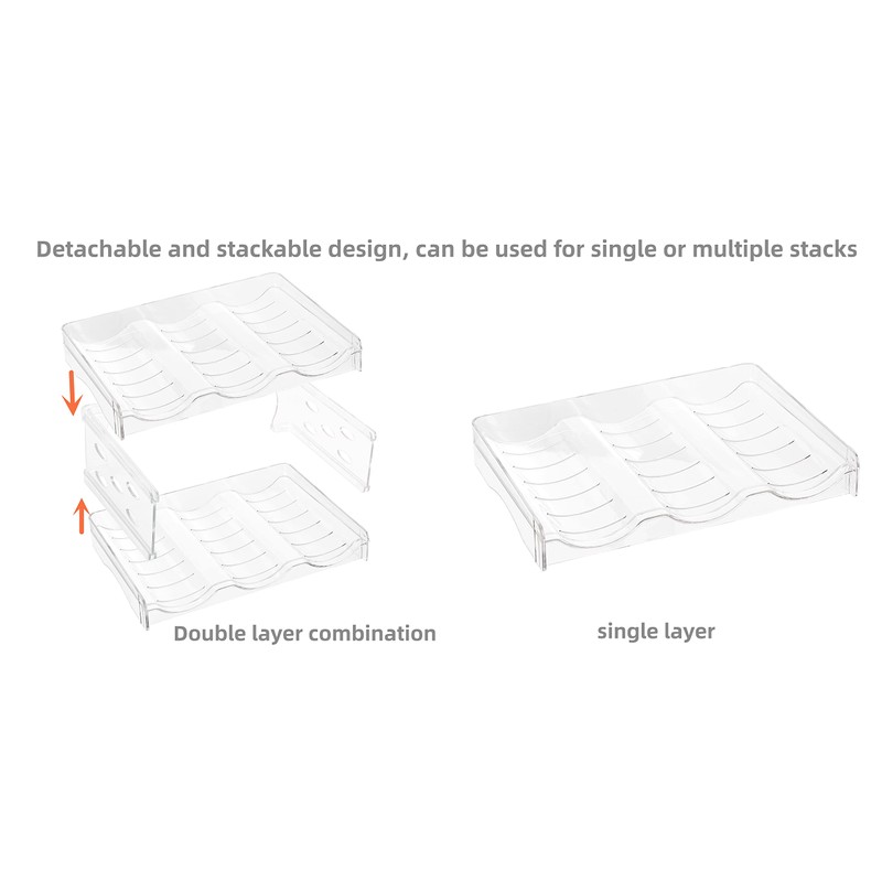 - STYLISH:Made of durable BPA and shatter-resistant plastic,the high transparent materials makes it easy to identify the product on rack and allow you to quickly find what you want to drink,Every Bottle is stored horizontally in individual compartments can be grab easily,Ideal for chilled drinks,wine and water bottle,great for smaller kitchens or mini bar,It will definitely attract others' attention and adding a touch of class to any interior setting