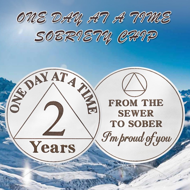- Celebrating Sober Journey :2 Year AA Medallion celebrates and tracks 2 years of sobriety achievements. "One Day at a Time" coin encourages individuals to focus on the present and stay sober each day. AA coin serves as a constant source of motivation, reinforcing the individual's strength and perseverance in maintaining sobriety. A fantastic daily reminder for those in recovery, inspiring them to continue their journey, as every sober day is a victory!