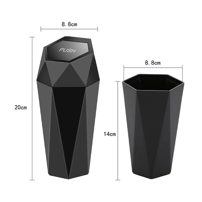 • Sleek and Design: Featuring a modern diamond design, this car trash can adds a touch of elegance to any vehicle or workspace. Its compact size makes it an ideal fit for your car's interior, ensuring that it complements your aesthetic while keeping your space tidy.