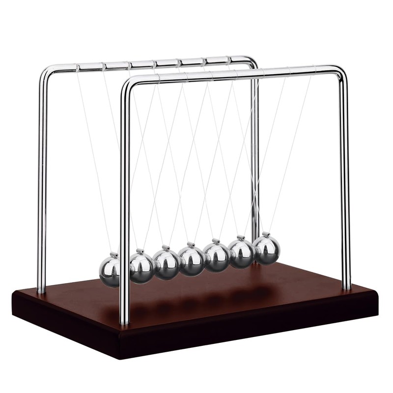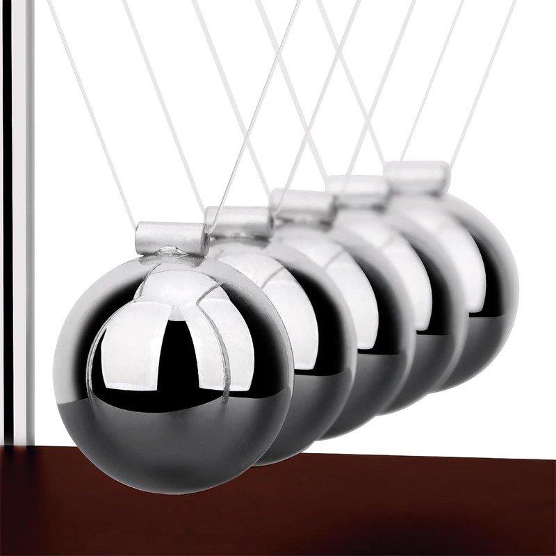 - Spannende kinetische Bewegung: Wenn ein Ball angehoben und losgelassen wird, trifft er den nächsten Ball. Dadurch wird Energie durch die Reihe von Bällen übertragen und eine faszinierende Bewegung erzeugt, die eine Weile anhält.