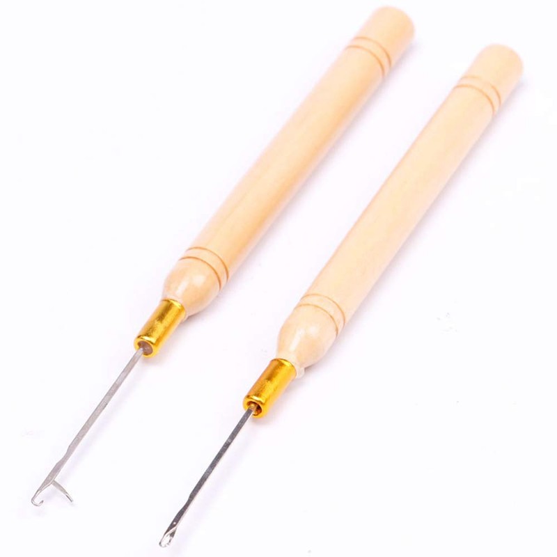 IETONE 5Pcs Wooden Handle latch Hook Needle Micro Rings Needle, Crochet Hooks for Hair For Micro Rings Hair Extensions Set DIY Craft
